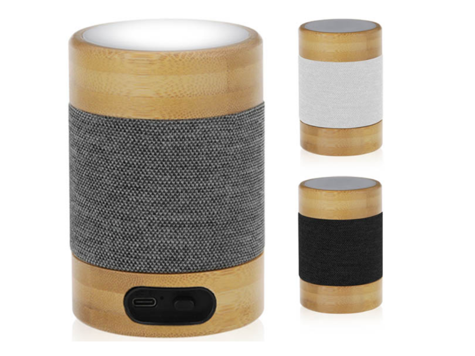 רמקול בלוטוס עוצמתי 5W עשוי במבוק בשילוב עם תאורת LED.